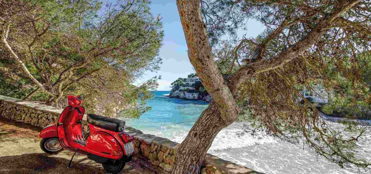 An der Ostküste Mallorcas, etwa fünf Kilometer von Cala d’ Or entfernt, liegt der flach abfallende, feine Sandstrand der Cala Mondrago.