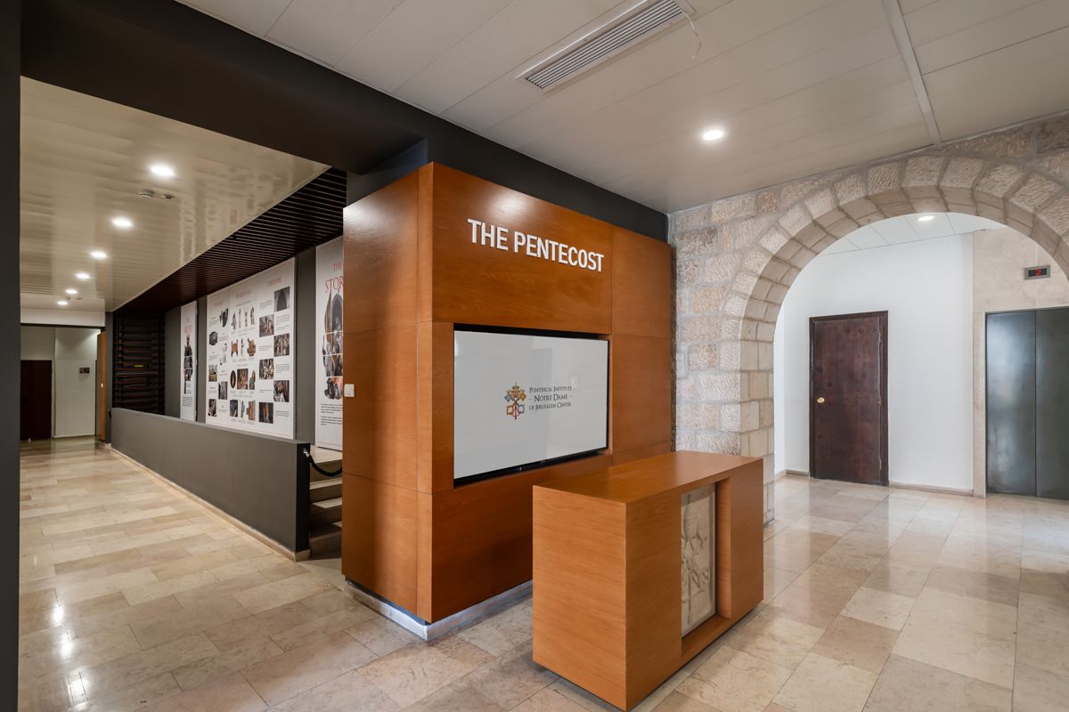 Mit dem „Pentecost Room“ eröffnet das Pontifical Institute Notre Dame of Jerusalem Center einen neuen, immersiven Raum der Kontemplation und des interreligiösen Dialogs. Ein monumentales Wand- und Deckenbild des chilenischen Künstlers Daniel Cariola, der durch das Werk „Encounter in Magdala” bekannt wurde, versetzt die Besucher in die biblische Pfingstszene. Die Installation ist Teil der „Notre Dame Experience“ und verknüpft Kunst, Liturgie und Geschichte zu einem begehbaren Glaubensraum.
