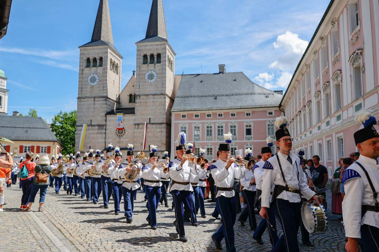 Im Juni findet wieder das traditionelle Bergknappen-Fest in Berchtesgaden statt. Bei ihrem großen Fest dreht sich alles um das AlpenSalz aus den Tiefen des Berchtesgadener Salzberges – und das schon seit mehr als 500 Jahren. Los geht es am Sonntag, 8. Juni um 20 Uhr, wenn die Trommler und die Knappschaftskapelle durch den Markt marschieren und dann am Schloßplatz ein Standkonzert geben. Auch der Pfingstmontag beginnt musikalisch mit einem Weckruf der Kapelle der Bergknappen und einem Festzug durch das historische Zentrum Berchtesgadens. Die anschließende Einfahrt in das Salzbergwerk mit Festakt bleibt an diesem Tag allein den Bergmännern vorbehalten – normalerweise kann man sich fast täglich untertage darüber informieren, wie heute noch Salz abgebaut wird. Übertage können Besucher die Bergmänner und Musiker dann wieder bewundern, wenn sie um 10 Uhr über die Salzburger Straße durch das Nonntal zur Stiftskirche ziehen, wo um 10.30 Uhr der Lob- und Dankgottesdienst beginnt. Ungefähr eine Stunde später startet dort der große Festzug durch den Markt bis zum Hofbrauhaus. Prächtig sind die blau-weißen Trachten mit schwarzen Hüten anzusehen, auf der Prozession werden Werkzeuge wie Bergeisen, Schlägel, Horn, Häckel und Bergbarte sowie Fahnen getragen. Der dienstälteste Bergmann darf das Zunftzeichen, das „Bergmandl“ schultern.