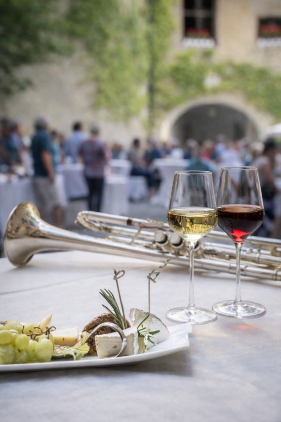 Seit Jahrhunderten wird auf den Hängen rund um die Gemeinde Schenna oberhalb von Meran Wein angebaut. Die Reben ziehen sich entlang der Panoramapromenade Mitterplattweg und zieren die steilen, sonnenverwöhnten Weinberge des Kirchenhügels. Neben der Kellerei Meran gibt es rund 30 eigenständige Weinbauern in und um Schenna. Während der neuen Themenwoche Wein.Klang.Frühling vom 3. bis 17. Mai 2026 finden verschiedene Veranstaltungen rund um den edlen Rebensaft statt. Winzer öffnen ihre sonst nicht zugänglichen Keller, es gibt Verkostungen und Maitanzfeste. Das Außergewöhnliche aber ist die musikalische Begleitung der Events: Mal ist es der Schenner Chor, mal eine Orgel oder ein DJ – denn Struktur, Körper und Noten sind nicht nur Begriffe aus der Önologie, sondern auch aus der Musik. Studien zeigen, dass Harmonien die Wahrnehmung von Säure, Fruchtigkeit und sogar Qualität beeinflussen können. Musiker Stefano Rubino bringt diese bei Melodien im Weinglas zum Klingen, während Gäste im Restaurant Luminis food & wine dinieren. Bei Schenna.Wein – Beats im Glas im Ortsteil St. Georgen mit Blick auf Meran und die umliegende Bergwelt bietet die Bauernjugend Schenna ihre besten Tropfen an und sorgt für das leibliche Wohl. Wer auf Alkohol verzichten möchte, nimmt an einer der Yoga-Einheiten mit Klangschalen zwischen den Reben oder an einer Genusswanderung teil.