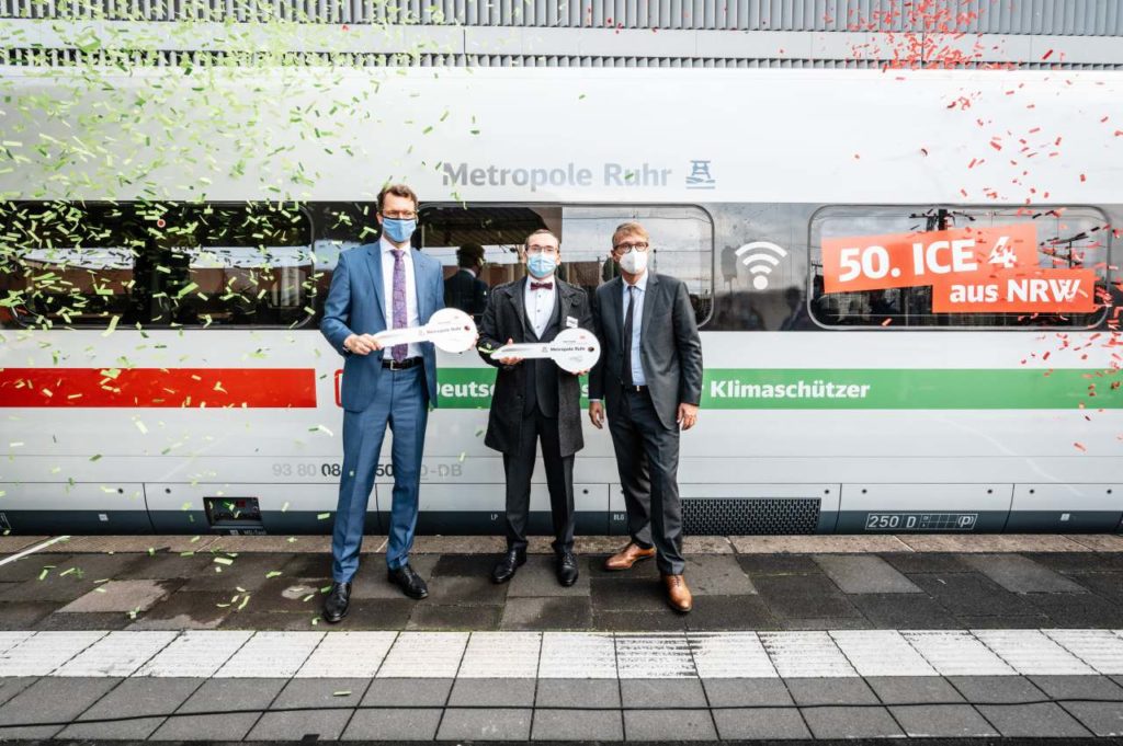Der 50. ICE 4 der Deutschen Bahn (DB) ist auf den Namen „Metropole Ruhr“ getauft. Erstmals hat nicht die DB entschieden, wie ein ICE heißen soll. Über den Namen des Jubiläumszuges haben die Menschen in Nordrhein-Westfalen im Rahmen eines Radio-Gewinnspiels des Senders WDR 2 abgestimmt. Der Gewinner Lukas Termath war ebenfalls als Taufpate mit dabei.