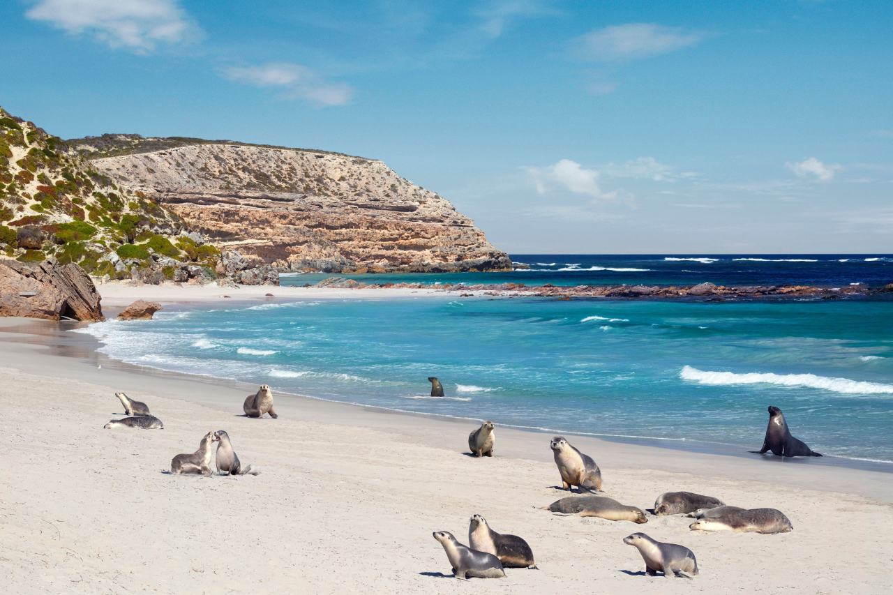 Die unzähligen und namensgebenden Kängurus hingegen, die die saftigen Graslandschaften der Insel durchstreifen, sehen Besucher fast überall vom Wegesrand und ohne Tour. Bei einem Ausflug zum markanten Felsbogen Admirals Arch im Flinders Chase National Park, der auch über den wiedereröffneten Wilderness Trail erreichbar ist, können Besucher eine große Kolonie an Pelzrobben beobachten, die sich zwischen den Felsen ausruhen oder in den Wellen spielen. Ein Must-See für Tierfreunde ist Seal Bay, wichtigste Touristenattraktion der Insel und drittgrößter Rückzugsort für die vom Aussterben bedrohten australischen Seelöwen, von denen es nur noch rund 12.000 Exemplare gibt. Guides führen Interessierte zur Kolonie am Strand und geben spannende Infos rund um die Lebensweise der Flossenfüßer. Auf eigene Faust und mit etwas Abstand lassen sich die Tiere auch von einer rollstuhlgerechten Plattform zwischen den Dünen beobachten.