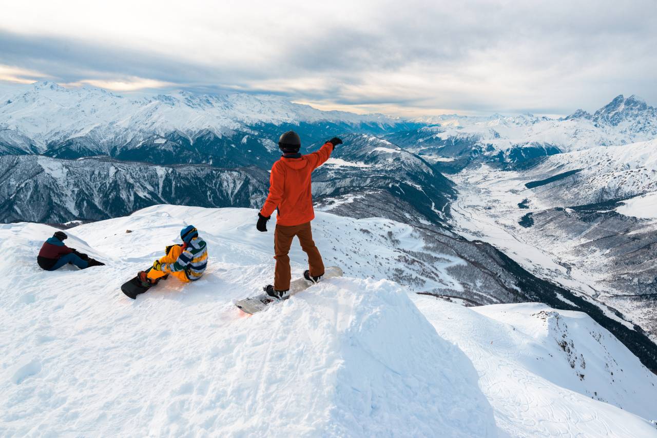 Snowboarder auf einem Gipfel im Gudauri Ski Resort