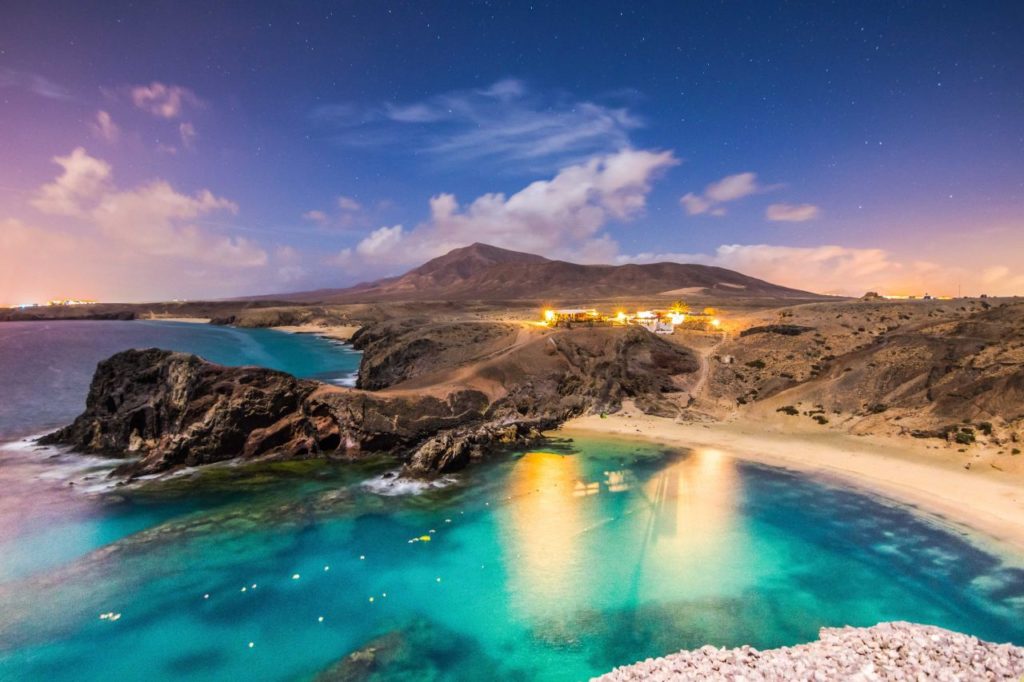 Im Süden Lanzarotes nahe des Touristenzentrums Playa Blanca liegen die Playas de Papagayo. Insgesamt sieben windgeschützte Buchten reihen sich entlang der Küste, nur durch Lavafelsen voneinander getrennt. Von der Erhebung südlich des Strands Playa Mujeres bietet sich Urlaubern ein besonderes Fotomotiv: türkisfarbenes Wasser, zerklüftetes Gestein, goldener Sand – und hoch oben auf einer der Klippen die Bar El Chiringuito. Dort genießen Besucher frischen Fisch, Cocktails und einen weiten Blick über den Atlantik.