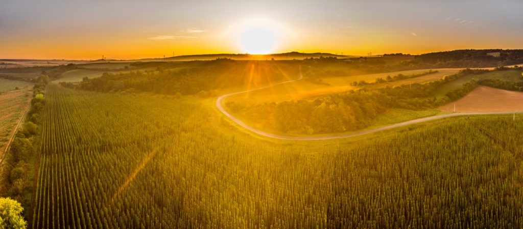 Hopfen ist immer die Grundlage des beliebten Getränks. Goldgelb schimmernde Hopfenfelder bei Zatec. Bild: @ UPVISION © CzechTourism