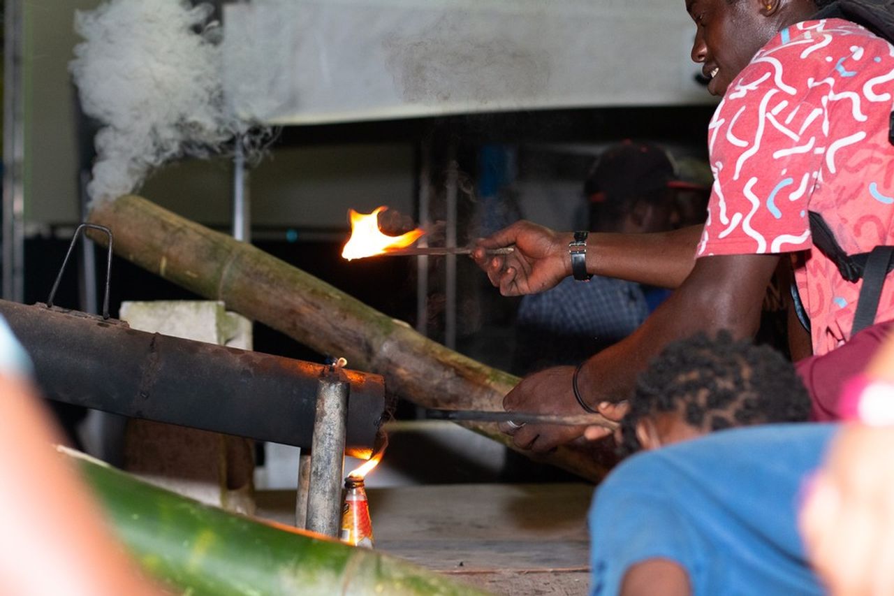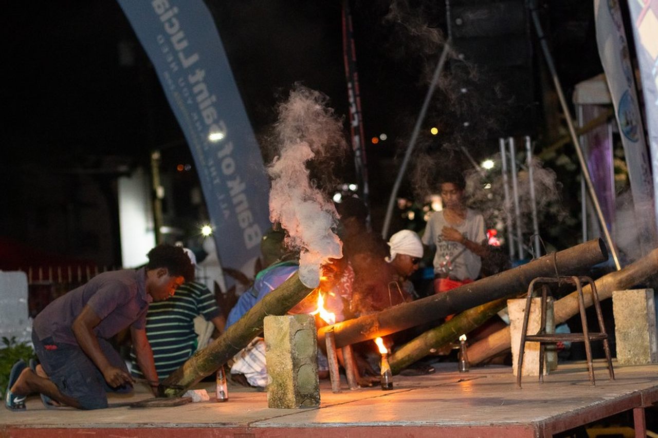 Kaum eine Tradition ist so charakteristisch für die lucianische Festzeit wie das sogenannte Bamboo Bursting. In vielen Gemeinden – besonders im Süden der Insel – bauen Nachbarn und Freunde gemeinsam große, hohle Bambusrohre zu einer Art „Luftkanone“ um. Ein kleiner Spritzer Kerosin wird im Inneren entzündet, das Gasgemisch dehnt sich aus, und beim Zünden entsteht ein kraftvoller, tiefer Knall, der kilometerweit zu hören ist.