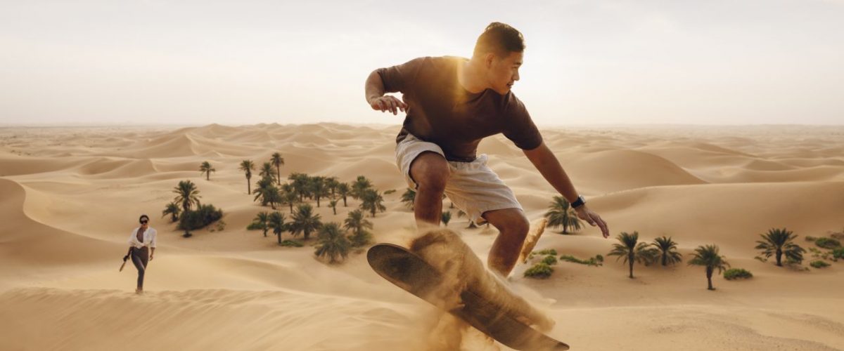 Abu Dhabi bietet optimale Bedingungen für Sandboarder. Inmitten der Rub al-Chali, der größten Sandwüste der Welt, bieten riesige Sanddünen perfekte Voraussetzungen für diese noch relativ neue Sportart. Einer der beliebtesten Orte ist die Liwa-Wüste, die sich etwa 200 Kilometer von Abu Dhabi entfernt befindet. An der Liwa-Oase am Rande des Empty Quarter gibt es einige der größten Dünen der Welt, die sich bis zu 300 Meter über die umliegenden Ebenen erheben. Per Sandboard kann man hier die scheinbar endlosen roten Pisten hinunter surfen. Für Sandboard-Neulinge sind die sanfteren Hänge ein guter Ort, um mit dem Sandboarding zu beginnen.